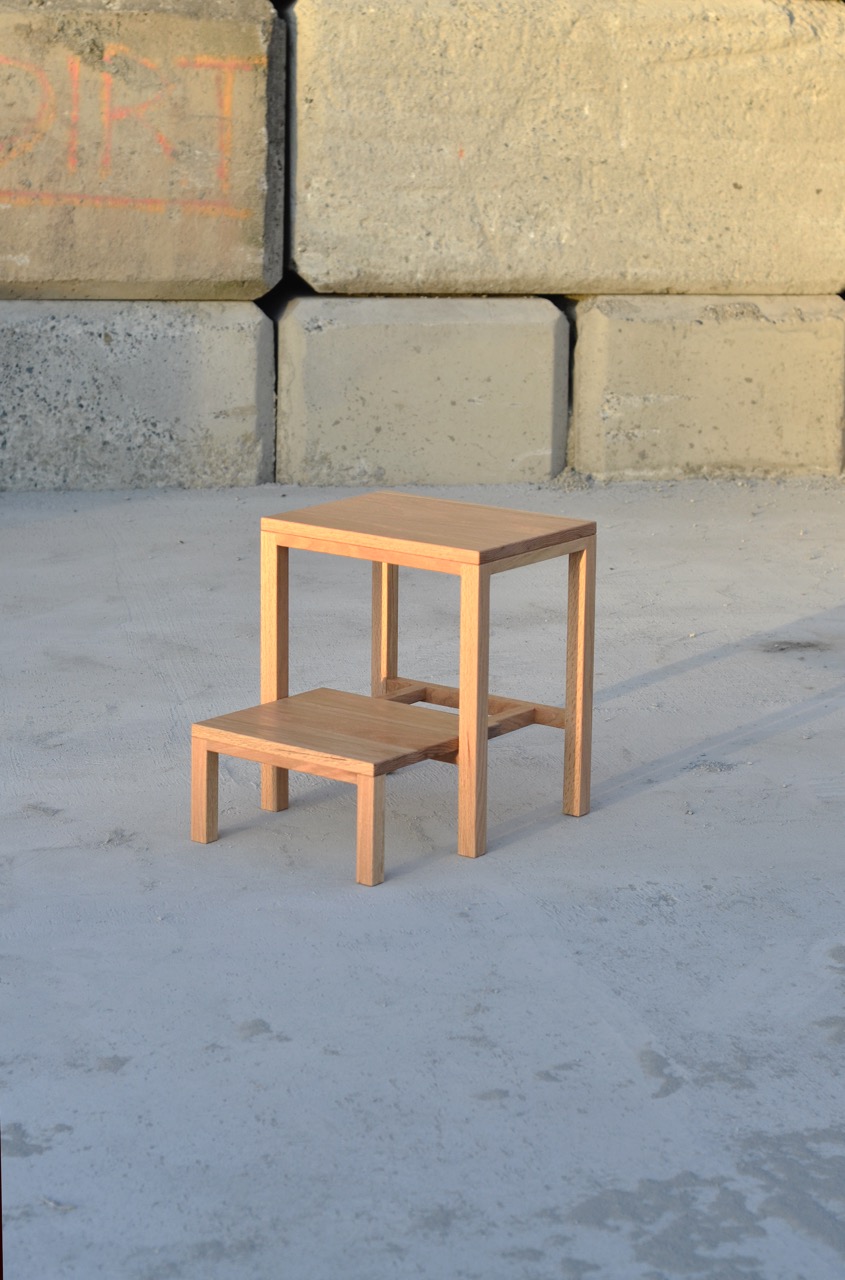 Stepping stool, for a reaching those items on the top shelf and beyond. This small but mighty stepping stool that can work well in many places, perhaps as a side table or even a stool. The step pulls out and you can neatly tuck it in to save space.